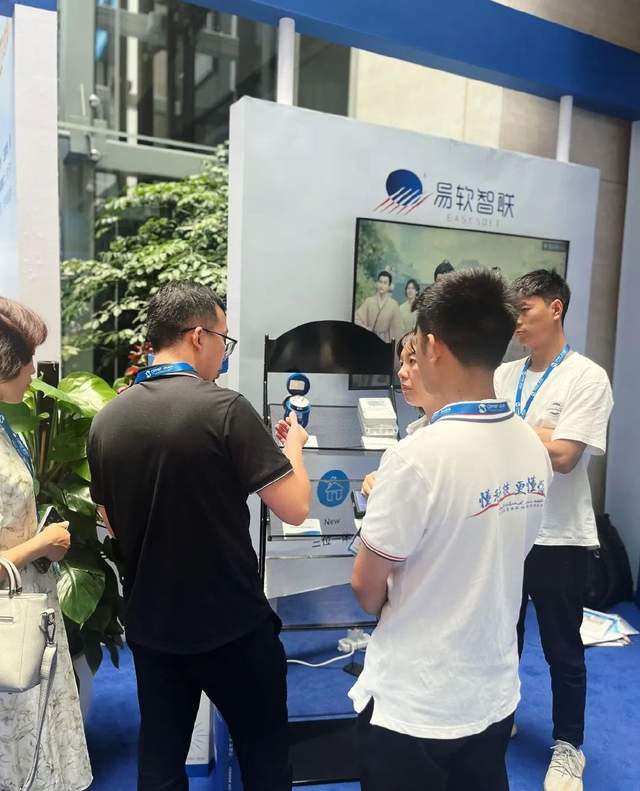 在企业展示区域,易软智联展位吸引众多与会嘉宾驻足交流和咨询,现场陈列的智慧设备备受瞩目。